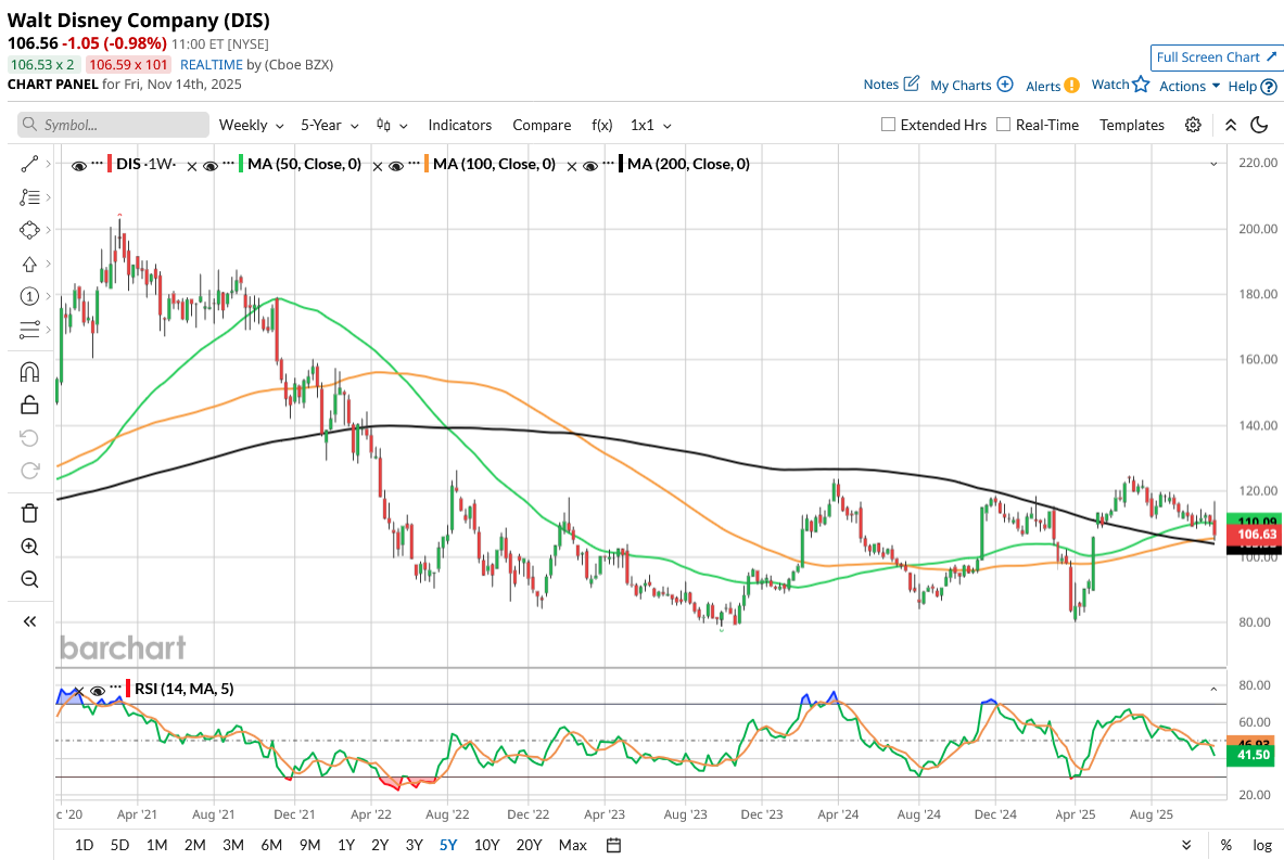 Disney (DIS) released its fiscal Q4 2025 earnings yesterday, Nov. 13, following which the stock plunged nearly 8% to fall below its 200-day moving average. The stock is on track to underperform the S&P 500 Index ($SPX) this year—something it did in three of the last four years. In this article, we’ll explore whether 2026 would be any different for the entertainment giant, beginning with a snapshot of its Q4 earnings.