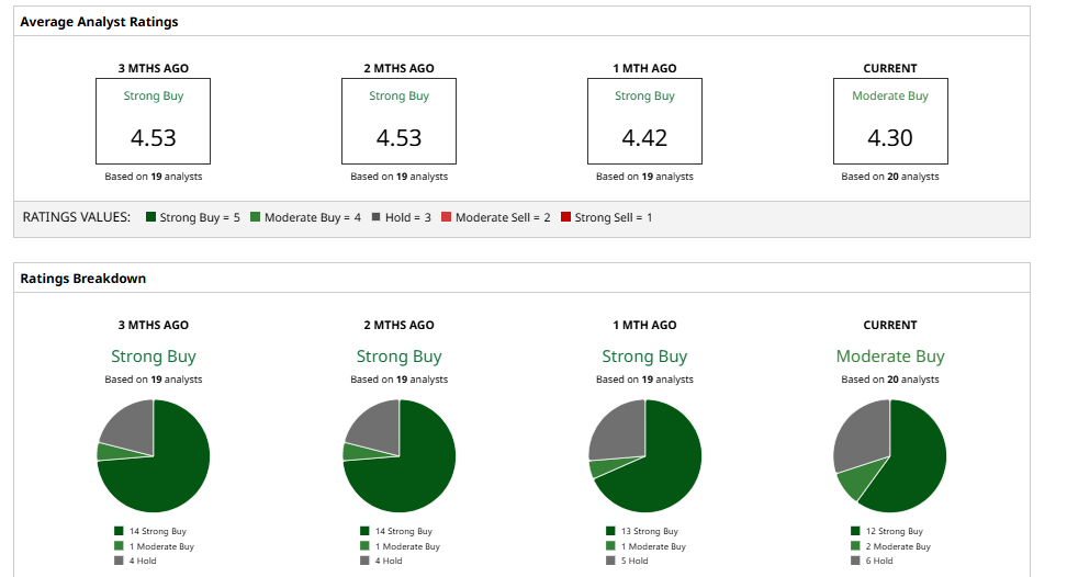 If we look at the overall consensus, LITE stock has a “Moderate Buy” rating from all 20 analysts covering the stock, with no “Sell” ratings. However, the stock has already surpassed its mean price target of $225.44 and is currently trading near its street-high level of $325, which suggests it could face a future correction.