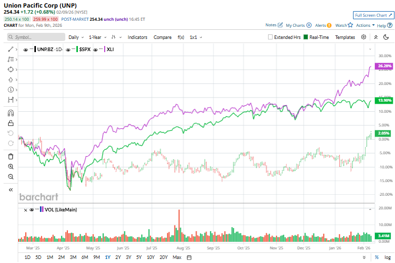 The railroad giant has notably underperformed the broader market over the past year but has surpassed in 2026. UNP stock prices have surged 5.1% over the past year, compared to the S&P 500 Index’s ($SPX) 15.6% gains. However, in 2026, the stock has surged 10%, surpassing SPX’s 1.7% rise.