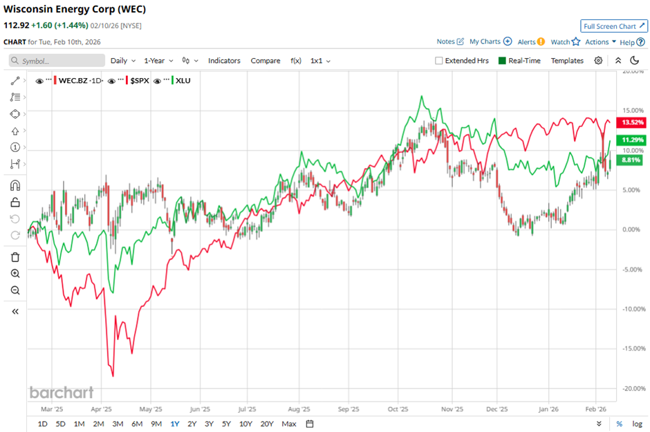 Shares of the electricity and natural gas provider have underperformed the broader market over the past 52 weeks. WEC stock has risen 11.6% over this time frame, while the broader S&P 500 Index ($SPX) has rallied 14.4%. However, shares of the company are up 7.1% on a YTD basis, outpacing SPX's 1.4% gain.