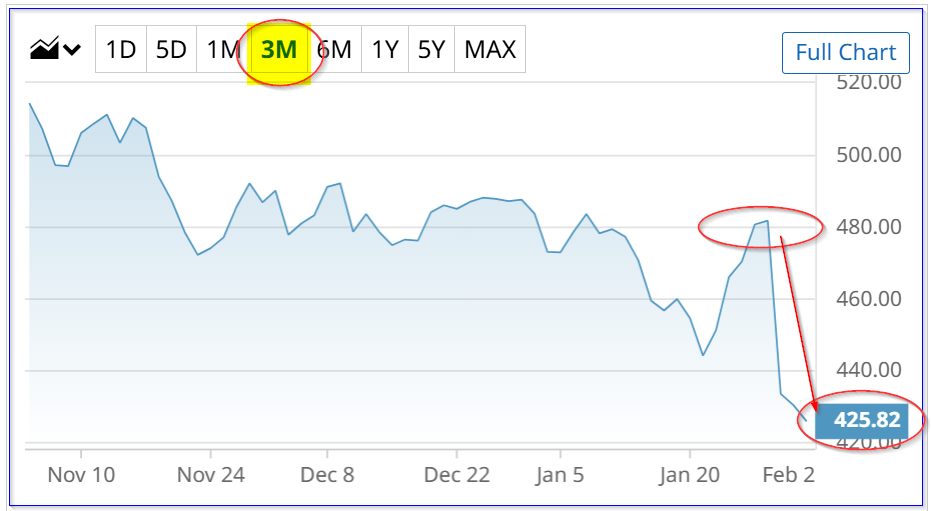 MSFT is down today at $424.53 per share, well off its recent Jan. 28 peak of $481.63, before its market close release of fiscal Q2 earnings on the same day. This is a near-12 % decline over several days that seems overdone.
