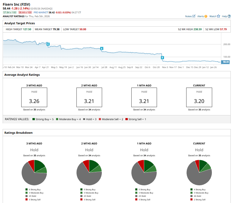 Shares of the IT giant have underperformed the broader market over the past year and in 2026. FISV stock has declined 74.5% over the past 52 weeks and has declined 13% on a YTD basis. In comparison, the S&P 500 Index ($SPX) has returned 12.2% over the past year but has dropped marginally in 2026.