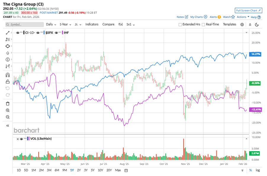 Shares of this healthcare insurance giant have underperformed the broader market over the past year. CI has gained 1.7% over this time frame, while the broader S&P 500 Index ($SPX) has rallied nearly 14%. However, in 2026, CI’s stock rose 6.1%, surpassing the SPX’s 1.3% rise on a YTD basis.