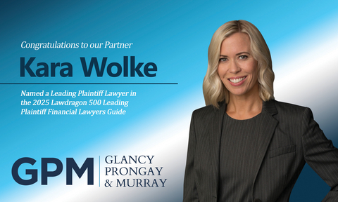 Glancy Prongay & Murray congratulates its partner Kara Wolke on being recognized in the 2025 Lawdragon 500 Leading Plaintiff Financial Lawyers Guideāa well-deserved acknowledgment of her outstanding work for investors.