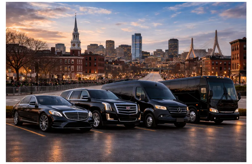 Patriots Limousine maintains a complete fleet of professionally serviced vehicles covering every group size heading into South Boston for parade day on March 15 this year: