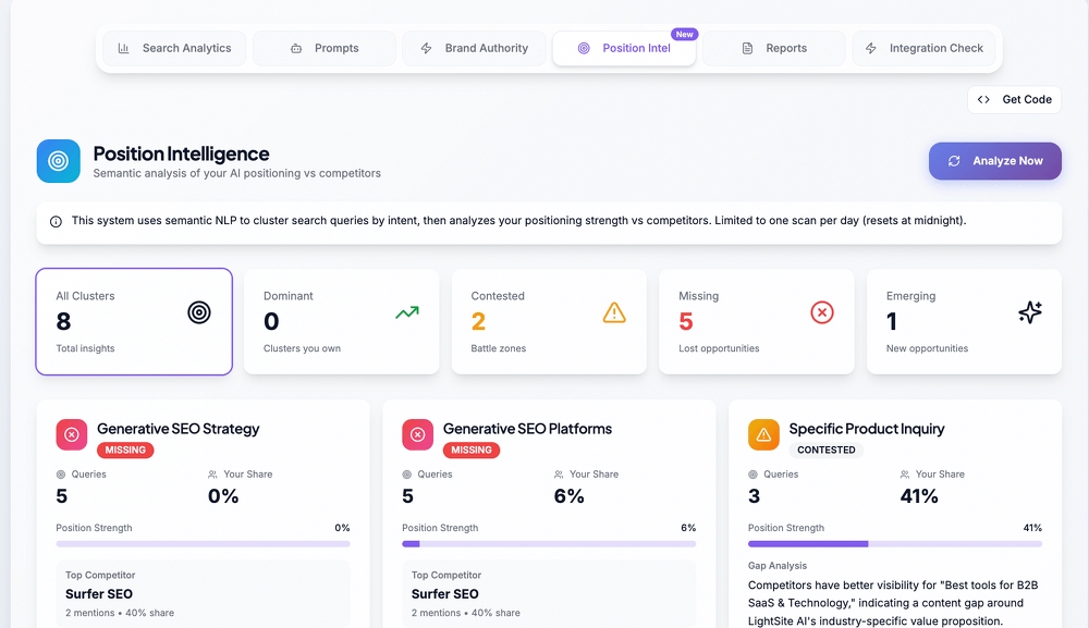 LightSite AI helps businesses improve how they are recognized and represented in AI-powered search. The platform builds and maintains structured data layers that make websites visible and understandable to AI systems and includes analytics to measure visibility, accuracy, and competitive position in Generative Engine Optimization, AI SEO, GEO, and AEO.