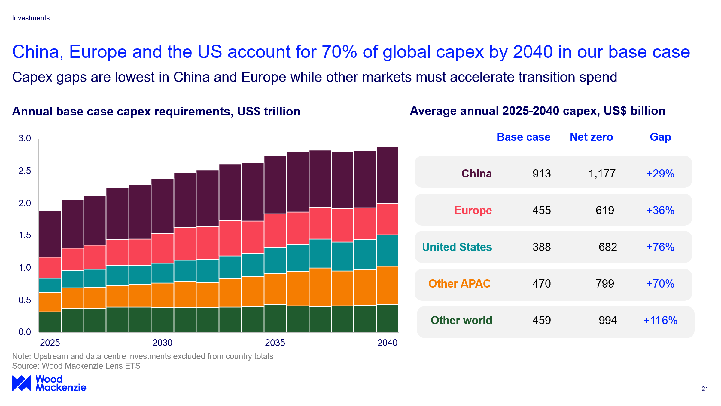 China, Europe, and the US account for 70% of global capex by 2040 in the base case: