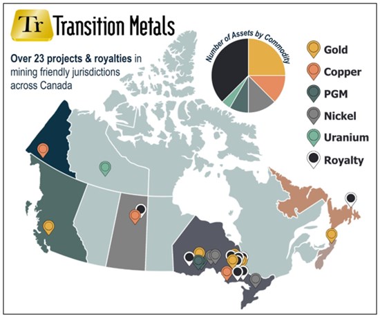 Figure 2: Map of Transition Metals' portfolio of projects and royalties within Canada